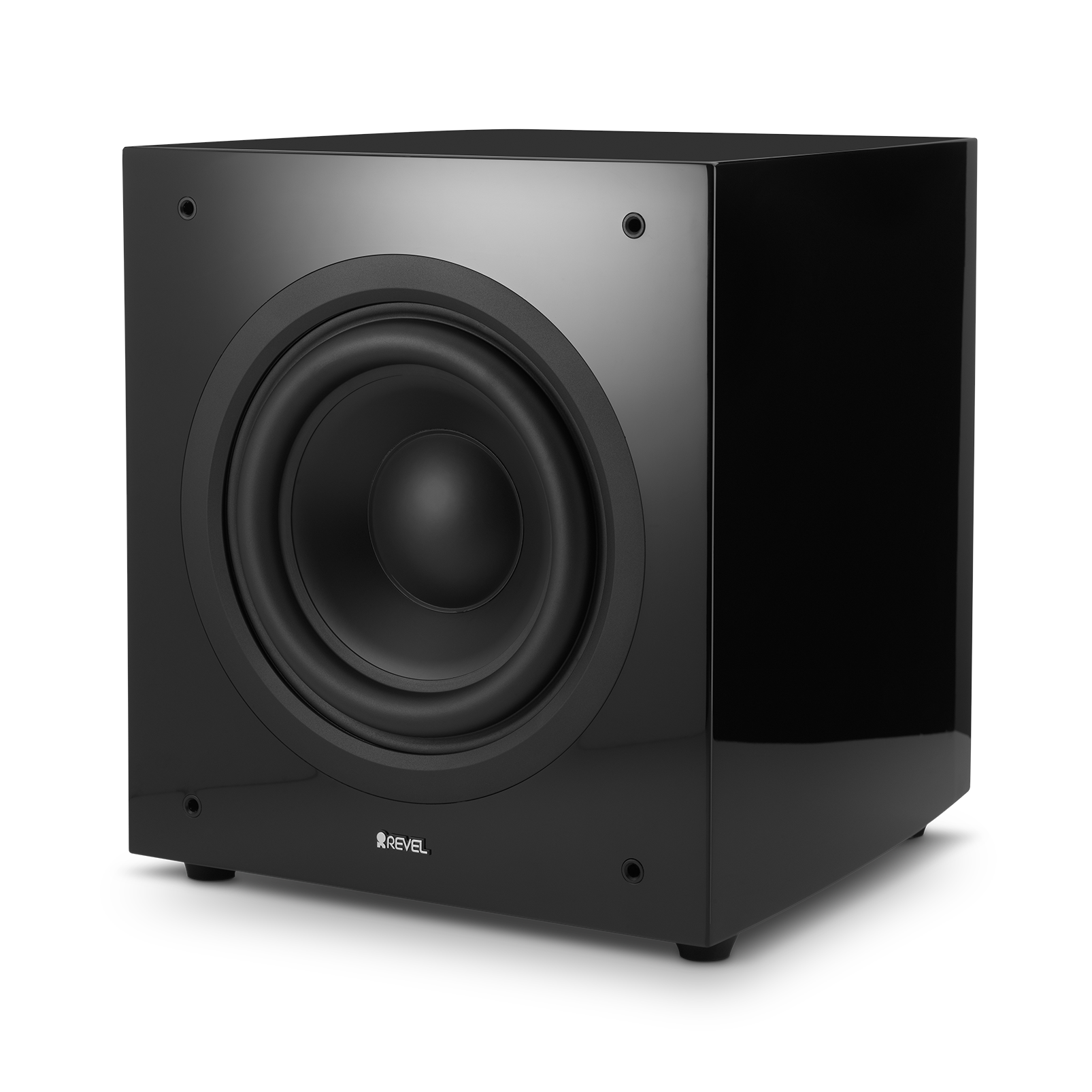 By repositioning the voice coil in the woofer, Revel engineers discovered they could improve the symmetry of the woofer displacement and thereby lower distortion. Additionally, asymmetry attributed to spider non-linearity can also lead to higher distortion. This was solved by adjusting the spider progression to greatly improve the symmetry and as a result, lowered distortion. To finish the enclosure, we selected high gloss black and white finishes to highlight the features of this beautiful subwoofer.
