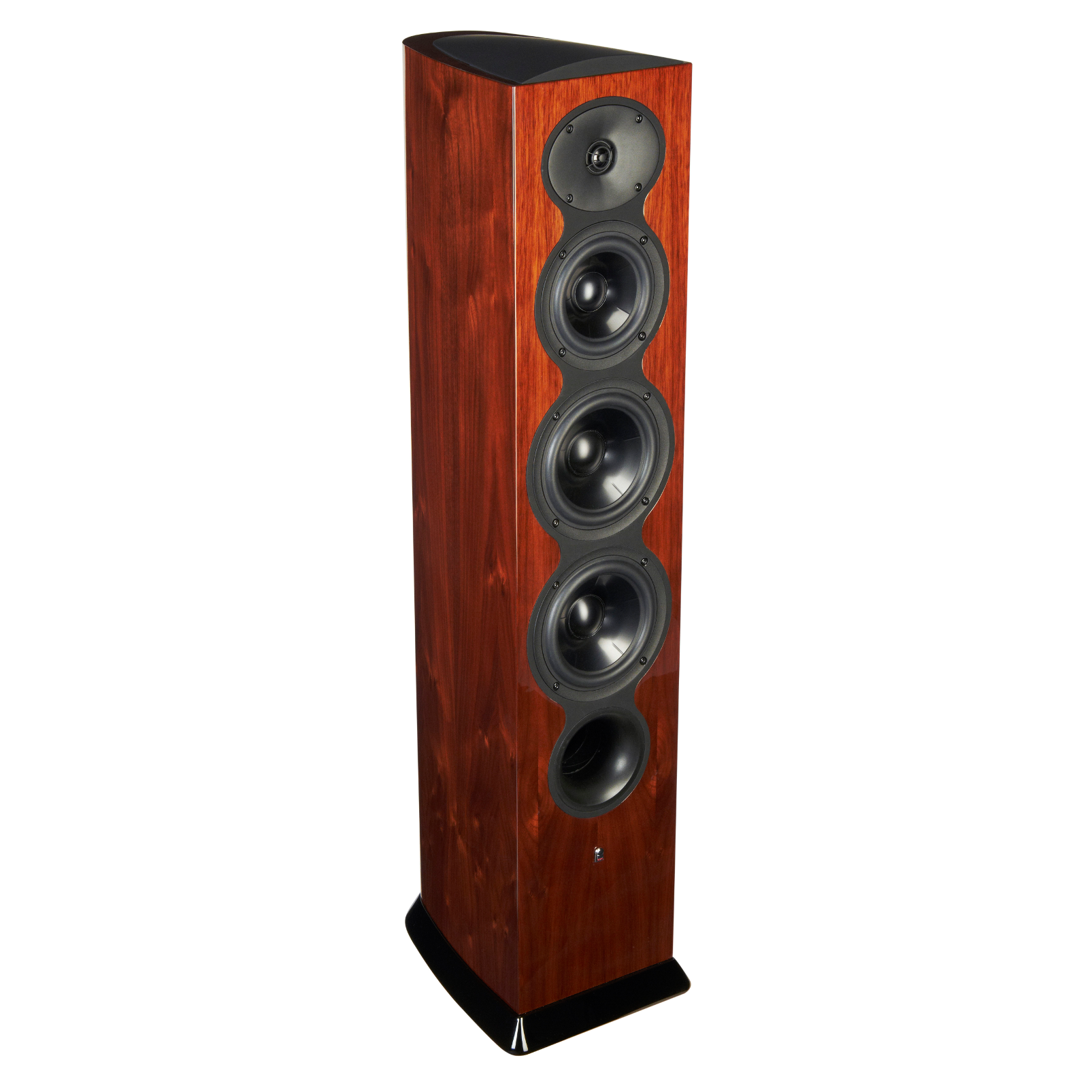The F206 is housed in enclosures that are similar to our flagship Ultima2 Series. These fully-curved enclosures are inherently stiffer than conventional box shapes and are formed with contiguous wood layers that prevent splitting. They feature strategically-oriented bracing that eliminates the possibility of enclosure-induced coloration. These beautiful, modern enclosures are finished in high-gloss piano black or genuine American walnut in a process (developed and overseen by Italian luxury cabinet makers) that exceeds automotive finish quality.